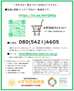 いろいろな事情で生活にお困りの方を対象とします。提供させてもらう品物は全て無償の寄付にてお預かりしたものです。本当にお困りの方に支援が届くよう、生活に余裕のある方のご利用は